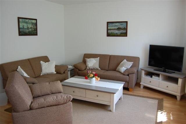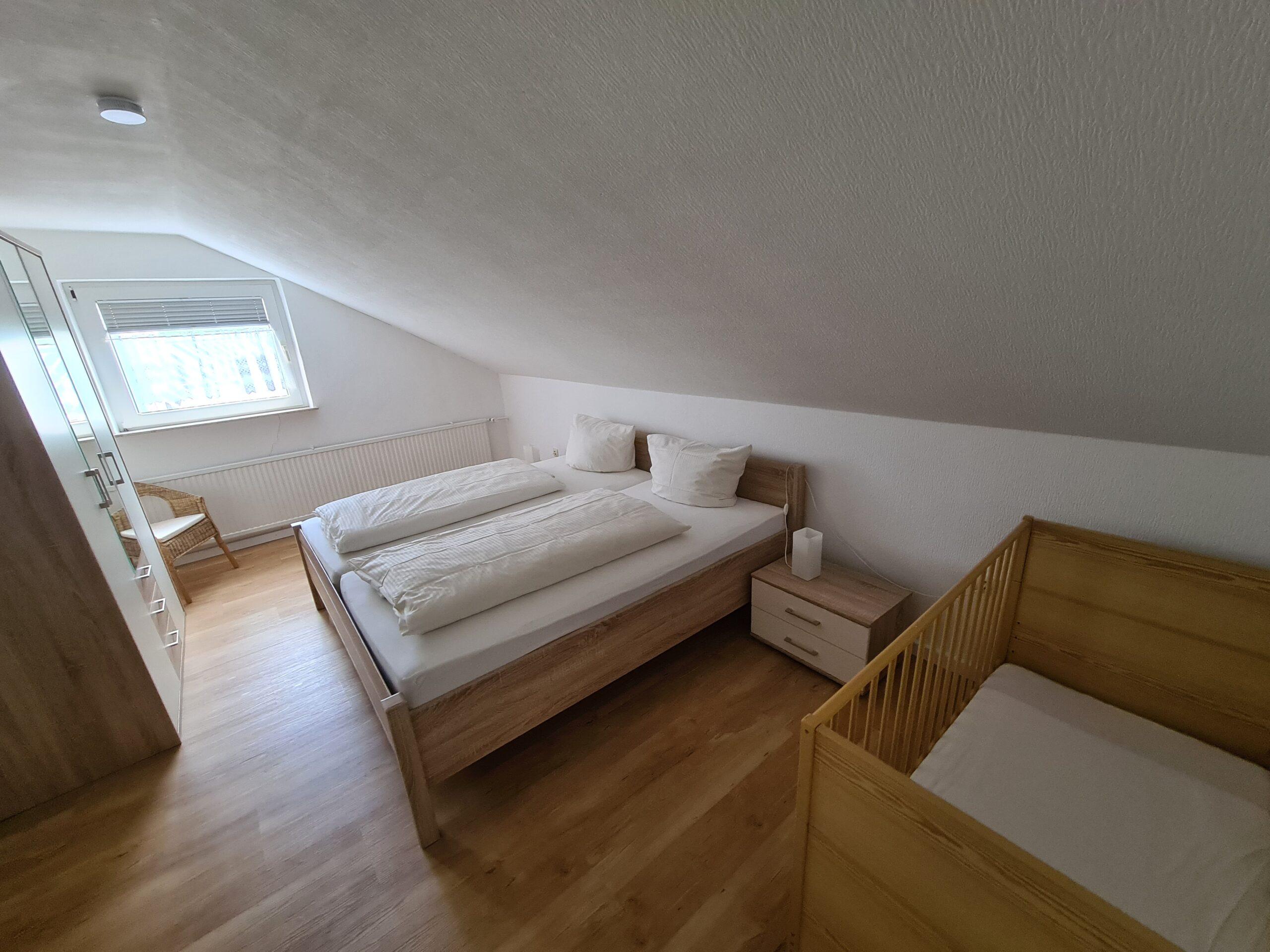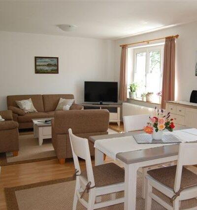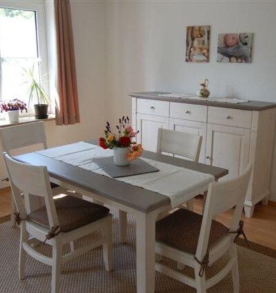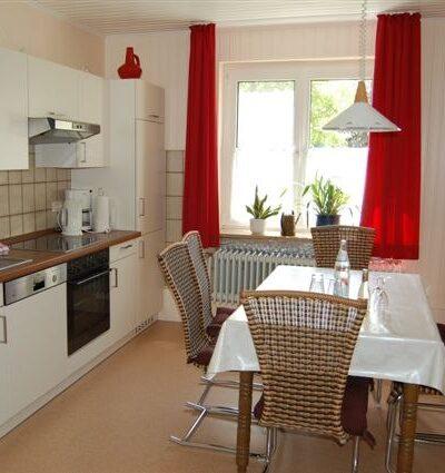 Ihr Domizil in unserem Hof ist eine rund 100 Quadratmeter große Ferienwohnung. Im Erdgeschoss befindet sich eine mit allem Komfort (Spülmaschine, etc.) ausgestattete Küche. Daran grenzt ein großes gemütliches Wohnzimmer mit Essecke an (Sat-TV, Radio, CD, WLAN). Im Badezimmer steht Ihnen neben Wickeltisch und Dusche ebenfalls eine Waschmaschine zur Verfügung. Im Obergeschoss befinden sich zwei große Schlafzimmer mit jeweils einem Doppelbett sowie ein weiteres Zimmer mit einem Einzelbett. Ein Kinderbett und Hochstuhl sind vorhanden.